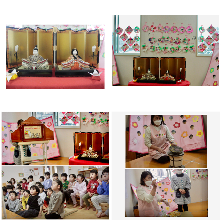 玄関に飾ってあった雛人形をおへやに移動させると大喜びのこどもたちでした♪